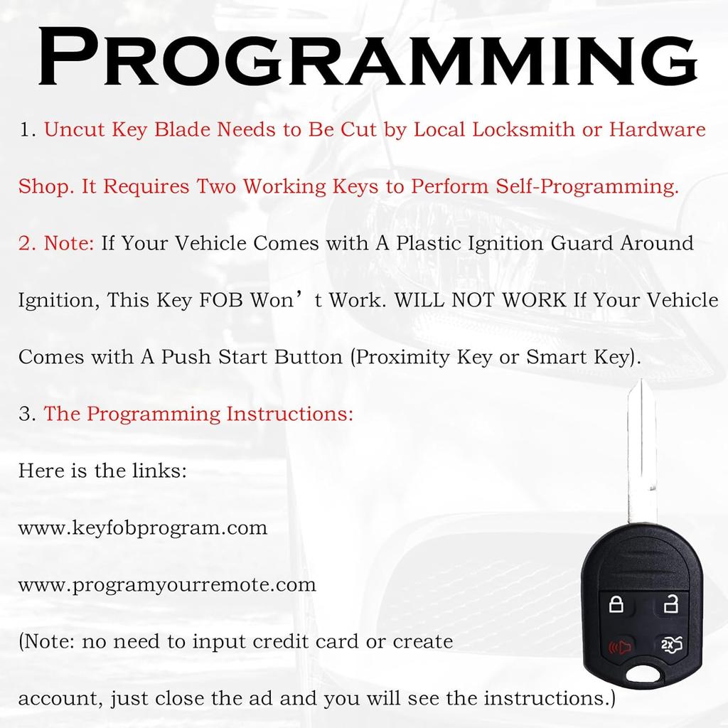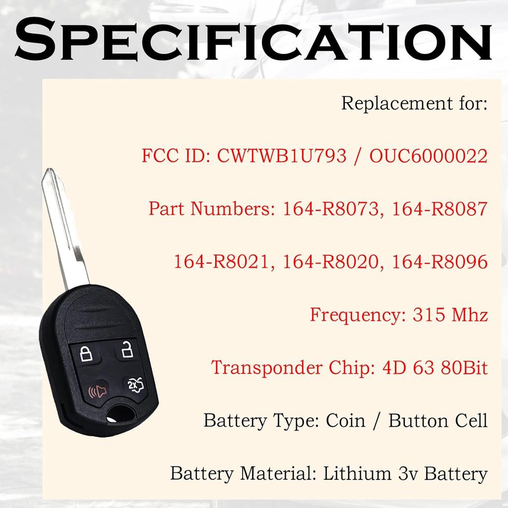 Key Fob Replacement Fits for Ford Explorer 2001-2015 Mustang Expedition Edge Focus Taurus Escape Flex Focus Fusion Lincoln Navigator Sable CWTWB1U793