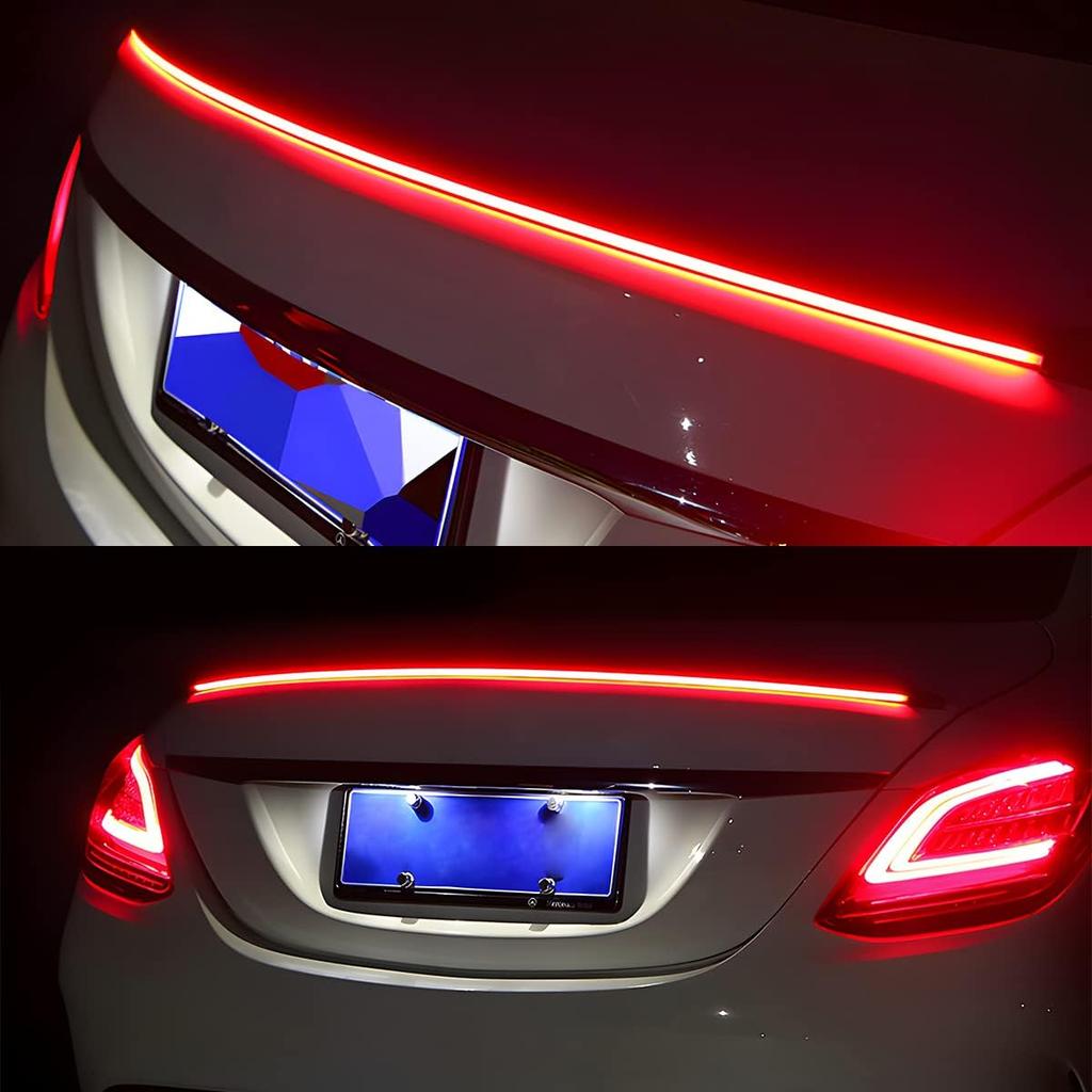 【Высококачественная светодиодная тормозная лента】: Автомобильная светодиодная лента стоп-сигнала состоит из 144 высококачественных светодиодных лампочек, которые имеют высокую яркость и долгий срок службы. Он изготовлен из мягкого силиконового материала, который является гибким, износостойким и долговечным, и может нормально работать при любых погодных условиях.. Это гарантирует, что ваш автомобиль будет хорошо виден и безопасен для вождения в самом оживленном движении днем или ночью.