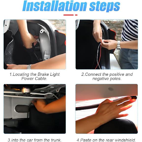 【Простота установки】: Светодиодный стоп-сигнал поставляется с двусторонней лентой, нет необходимости сверлить отверстия. Его можно приклеить напрямую, вы можете приклеить полосу третьего стоп-сигнала к внутренней стороне заднего стекла автомобиля.. Черный провод подключен к отрицательному полюсу, а красный провод подключен к положительному полюсу стоп-сигнала.. Эта световая панель четко напоминает транспортному средству позади вас соблюдать безопасную дистанцию.
