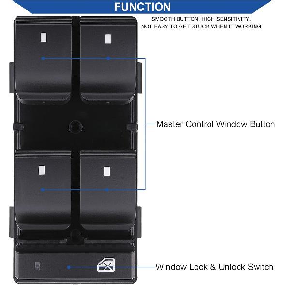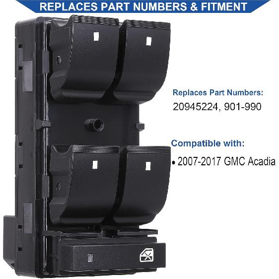 Obaee Power Window Control Switch Compatible With GMC Acadia 2007-2016 Replace OEM 20945224 901-990 Front Left Driver Side Button, Red Light