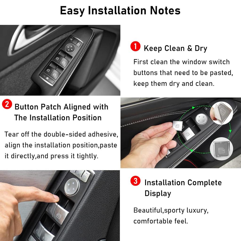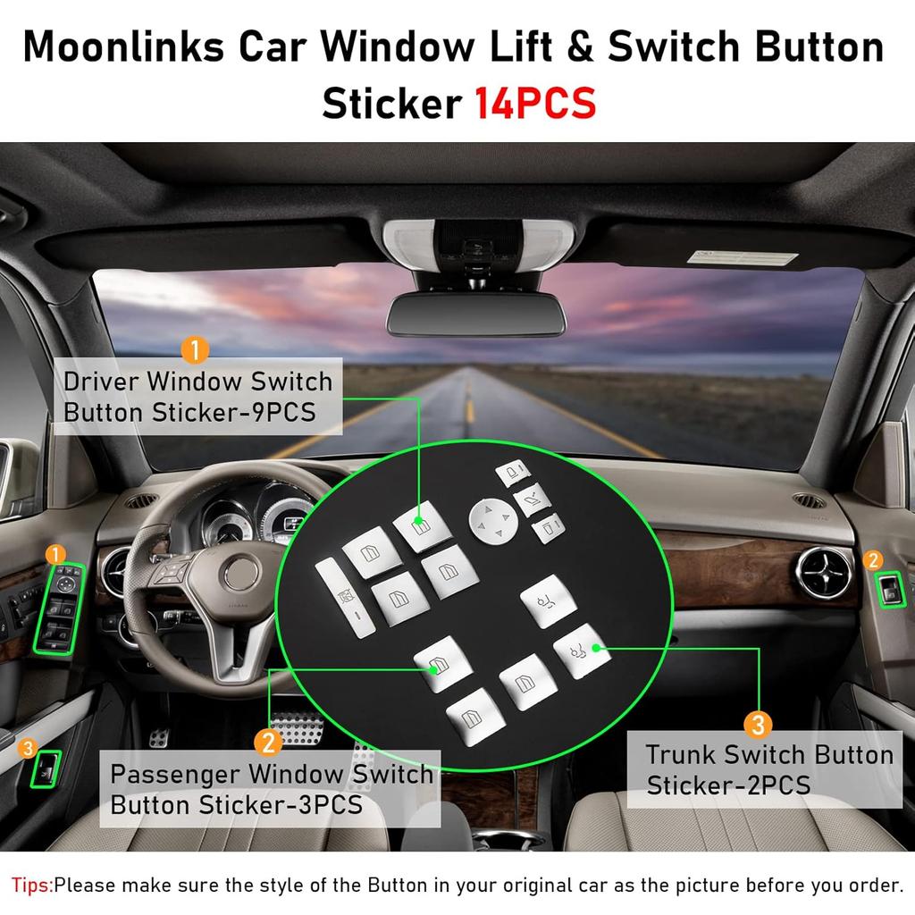 Moonlinks Inner Door Power Window Switch Button Covers Trim Sticker Replacement Compatible With Mercedes Benz A B C E G GLA CLA GLK GL ML GLE Class