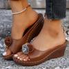 Женские новые сандалии с цветами 2025, летняя обувь на танкетке, женские уличные шлепанцы, женские сандалии на каблуке с мягкой подошвой, летняя обувь