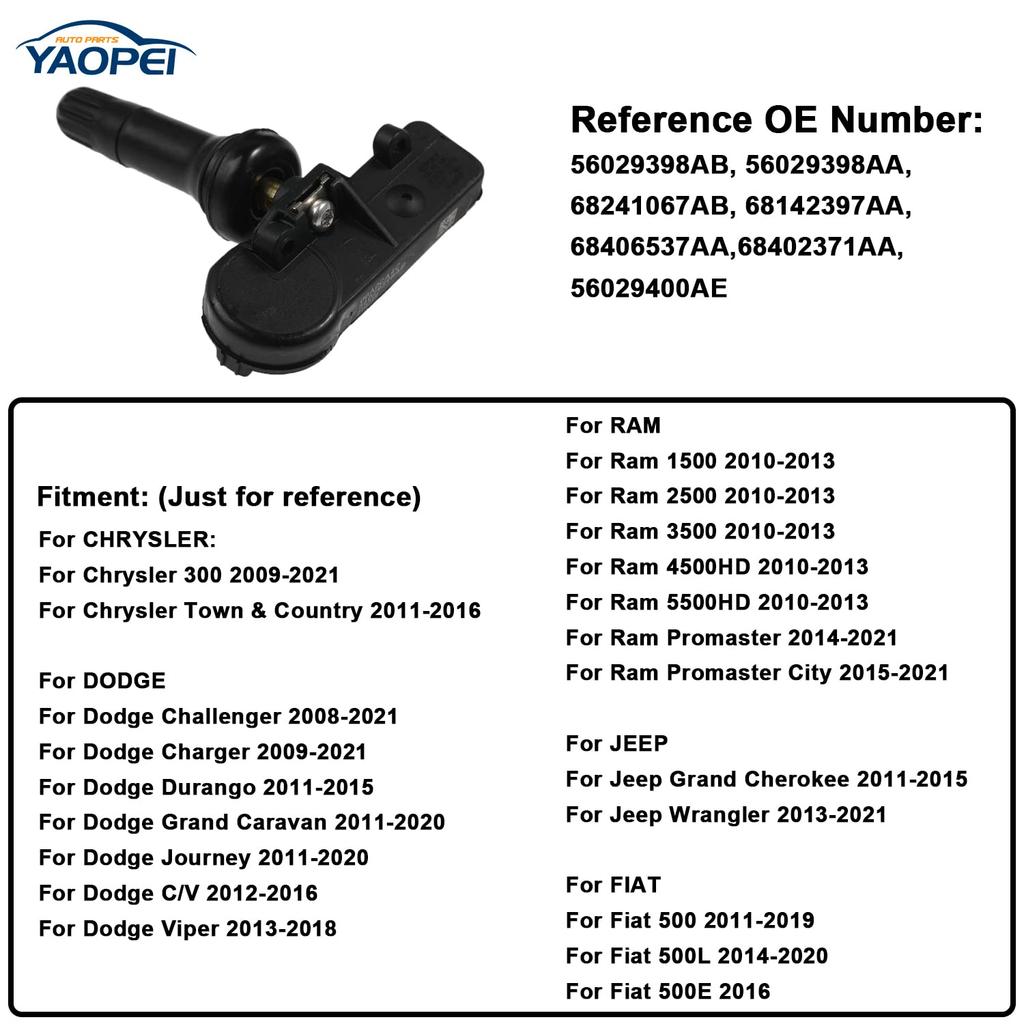 4 Pack Tire Pressure Monitoring System TPMS Sensors For Jeep Grand Cherokee Wrangler Dodge Charger Challenger Journey Ram 1500 Chrysler 300 Town
