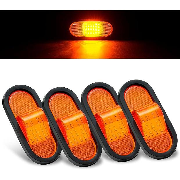 2Pcs 6.5 Inch Trailer Turn Signal Lighgts 6 Inch Oval LED Mid Turn Signal Amber Marker Light 24 LED W/Reflex Lens Mid-Ship Marker And Turn Signal