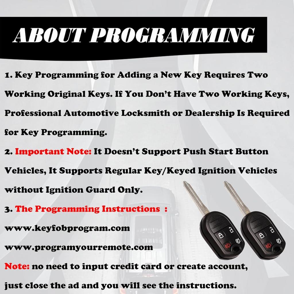 ПРОГРАММИРОВАНИЕ: Ссылка на Инструкции по Самопрограммированию Предоставлена. Программирование нового ключа требует наличия двух работающих оригинальных ключей. Если у вас нет двух рабочих ключей, для программирования ключей требуется профессиональный автомобильный слесарь или дилерский центр.
