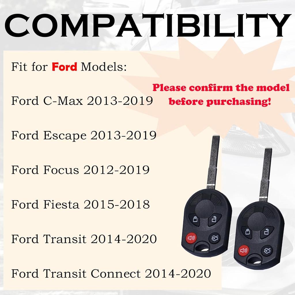 Keyless Entry Remote Control Head Key Fob Replacement Fits for Ford Focus 2012 2013 2014 2015 2016 2017 2018 C-MAX Escape Fiesta Transit Connect