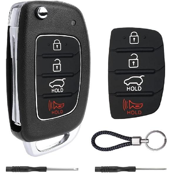 Чехол для ключа-брелока для Hyundai Sonata Santa Fe Sport 2018 2017 2016 2015 2014 2013 4 кнопки Бесключевой доступ Пульт дистанционного управления Складной Выкидной Чехол для ключа-брелока автомобиля