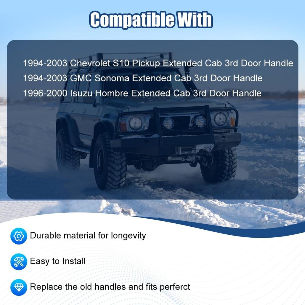NPAUTO Extended Cab 3Rd Third Door Handle Compatible With 1994-2003 Chevy S10 GMC Sonoma, 1996-2000 Isuzu Hombre Pickup Truck, Exterior, Black, 74300