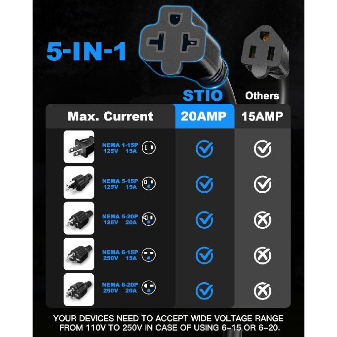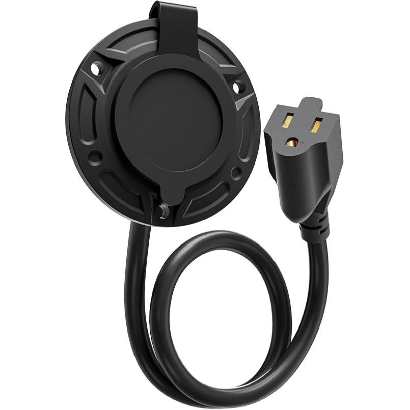 20A 125V AC Port Plug,12AWG Heavy-Duty RV Shore Power Inlet Plug With 5-In-1 T-Blade Adapter & 16'' Extension Cord,Waterproof AC Power Inlet Socket