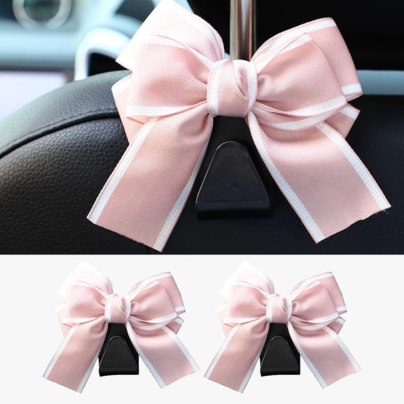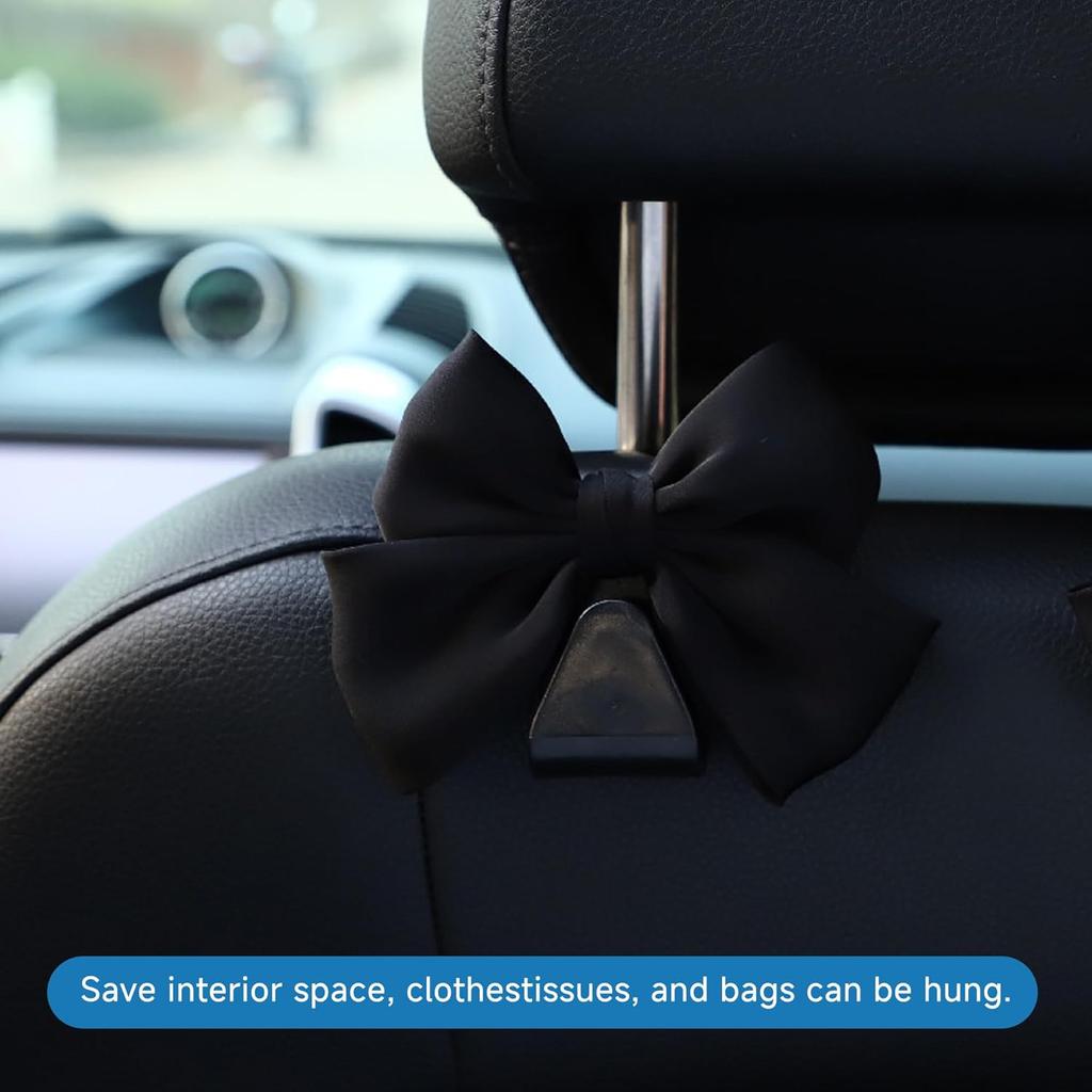 2PCS Car Seat Hooks, Cute Bow Car Seat Headrest Hooks for Purses, Bags, Umbrella, Universal Automotive Interior Decoration Accessoriesl for Vehicle,