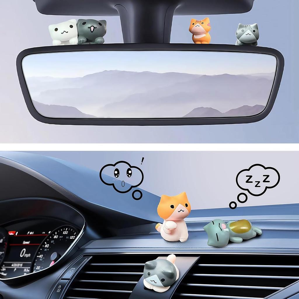 Car Cute Cat Decor Rearview Mirror Ornaments Decorations Dashboard Truck Interior Ornament Decorate Funny Pussy Figure EV Decorative Gifts RV Decors