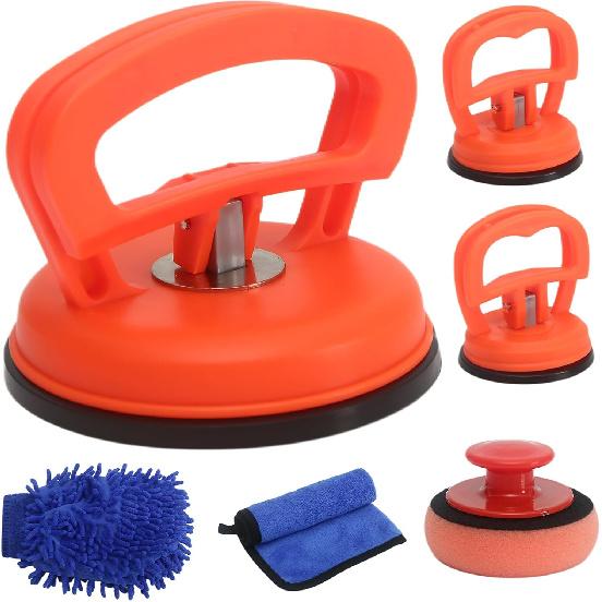 【Идеальный инструмент для удаления вмятин на автомобиле】Инструмент для вытягивания вмятин на автомобиле — идеальный многофункциональный инструмент. В комплект входит один большой оранжевый инструмент для удаления вмятин на автомобиле и два маленьких инструмента для ремонта вмятин на автомобиле, а по сравнению с другими инструментами для удаления вмятин при ремонте кузова автомобиля, мы оснащены варежкой из микрофибры для мытья автомобиля, маленьким полотенцем и губкой-щеткой.