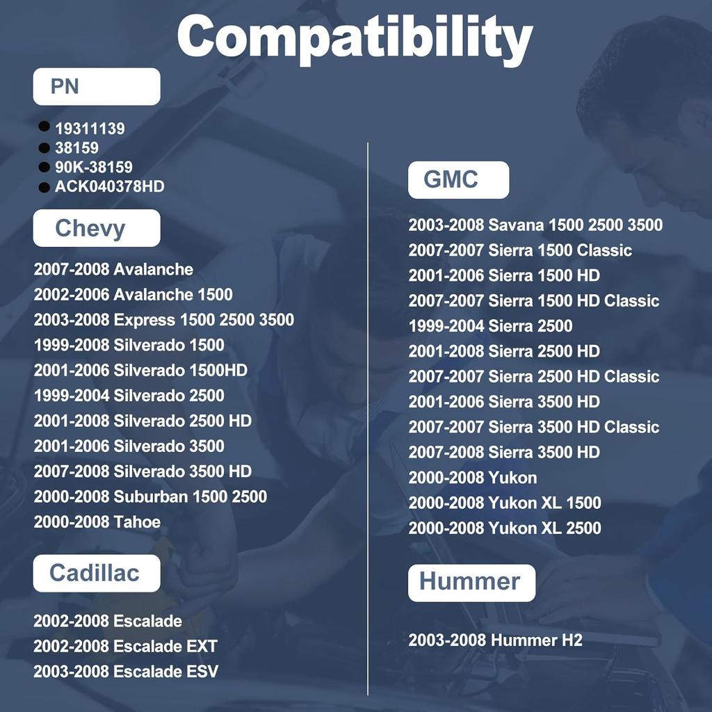 Fits for Cadillac & Hummer: This AC belt tensioner pulley belt kit is fits for 2002-2008 Escalade & Cadillac Escalade EXT, 2003-2008 Cadillac Escalade ESV, 2003-2008 Hummer H2