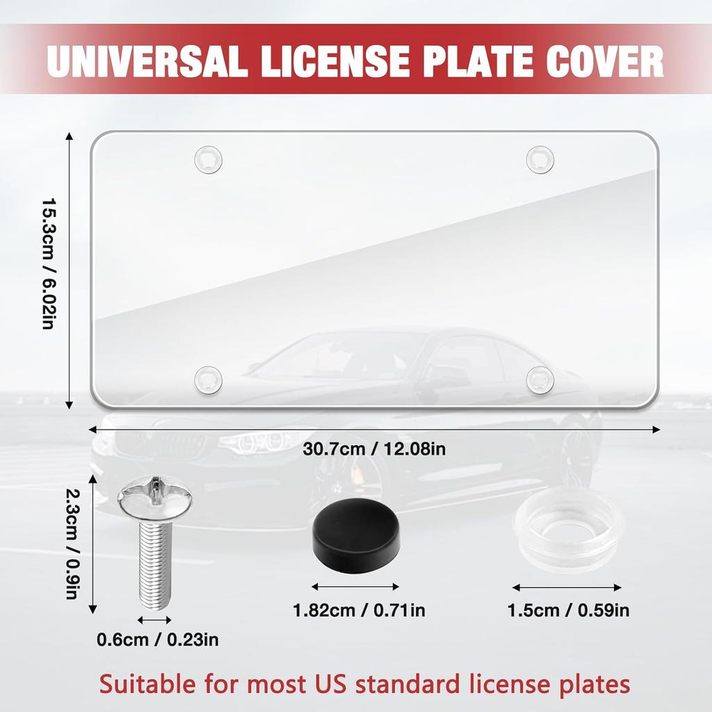 License Plate Protector 2 Pack, Clear License Plate Cover 12.08 * 6.02’’ Universal, Plate Cover For Car Plastics, Car Frame Cover Shield With