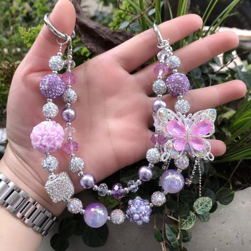 1 шт. Роскошная сверкающая акриловая цепочка для мобильного телефона с милой подвеской-бабочкой, разноцветными бусинами и кристаллами - Многофункциональная подвеска для сумки или брелок
