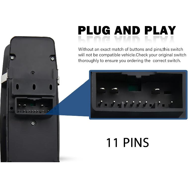 Driver Side Power Window Switch Replacement For 2011- Chrysler 300,2015-2017 Chrysler 200,2011- Dodge Charger,2016- Ram 1500 2500 3500|Replace OE