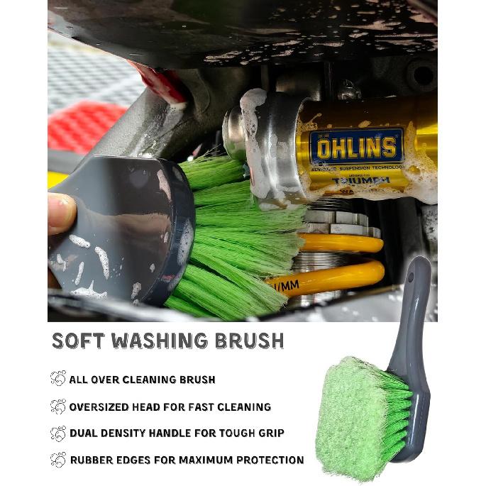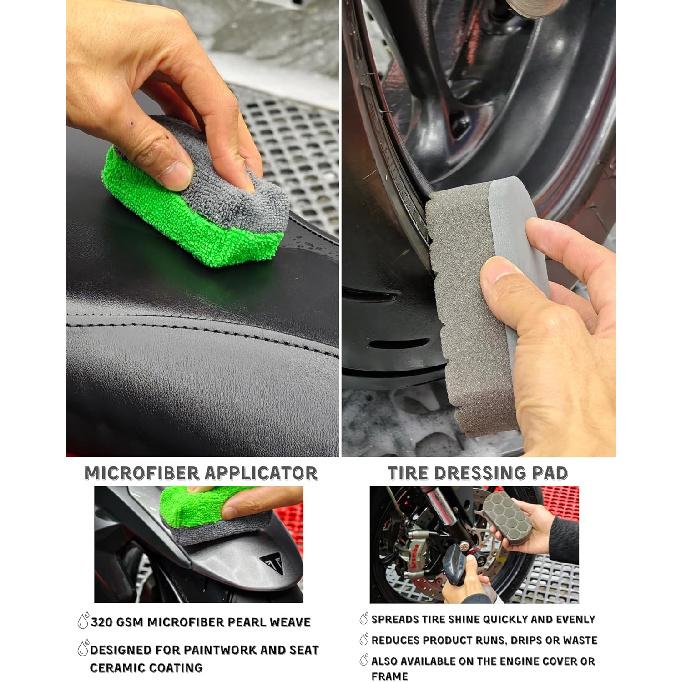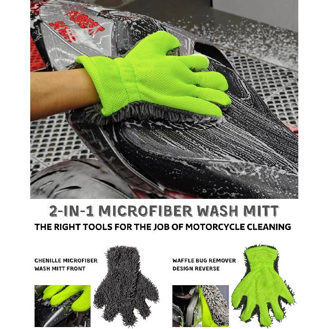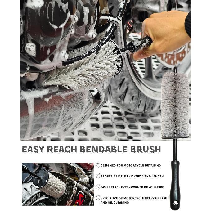 8 Pack Motorcycle Cleaning Kit - Professional Safe For Chrome/Engine/Tires, Hard Reach Brush, Microfiber Mitt, Detailing Tools, Drying Towel & Wax