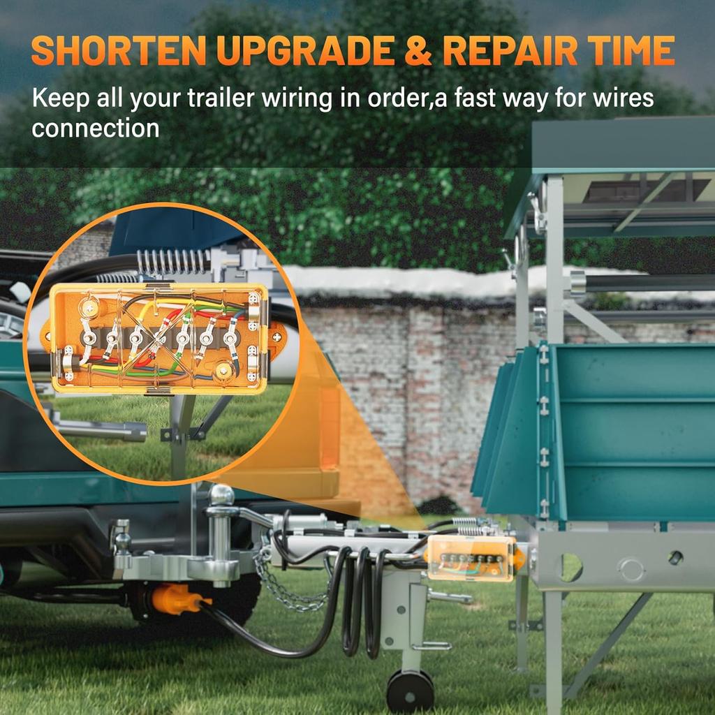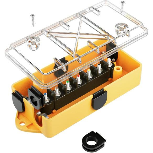 MECMO 7 Way Trailer Wire Junction Box Clear Cover Color-Coded 7 Pin Terminal Studs, Heavy Duty 7 Gang Trailer Wiring Connector Weatherproof