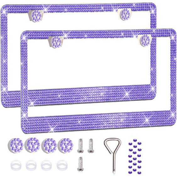 【Супер блестящие рамки для номерных знаков】: Зачем идти на скучные простые рамы номерных знаков, когда вы можете пойти супер фаб с рамой автомобильного номера с настоящими стразами в ней? Придайте своему автомобилю новый крутой вид прямо сейчас! Набор из 2 рамок для номерных знаков для женщин обязательно привлечет всеобщее внимание к вашему автомобилю на дороге.