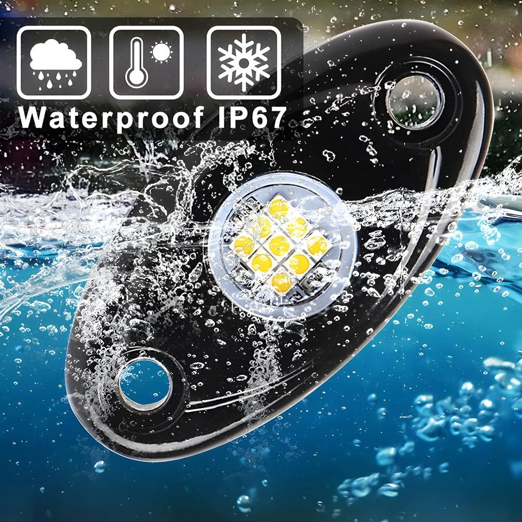 【IP68 Водонепроницаемый】: Корпус светодиодной подсветки днища изготовлен из литого алюминиевого сплава, заполненного водонепроницаемым клеевым слоем высокой плотности степени защиты IP68, который прошел испытание на самый высокий уровень защиты, полностью предотвращает попадание пыли и может быть погружен в воду на длительное время под определенным давлением без повреждения оборудования.. Не стоит беспокоиться о его рабочих характеристиках при ежедневной мойке автомобиля.