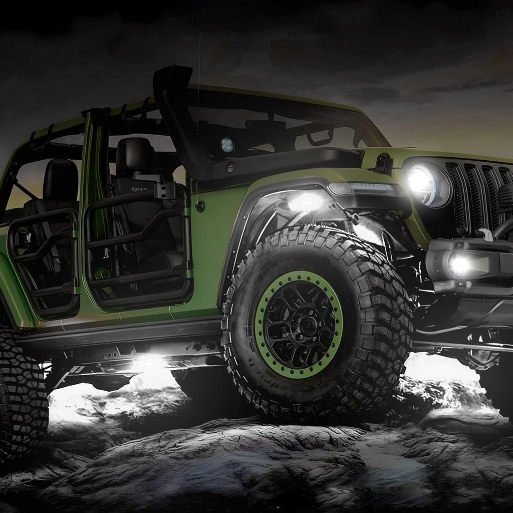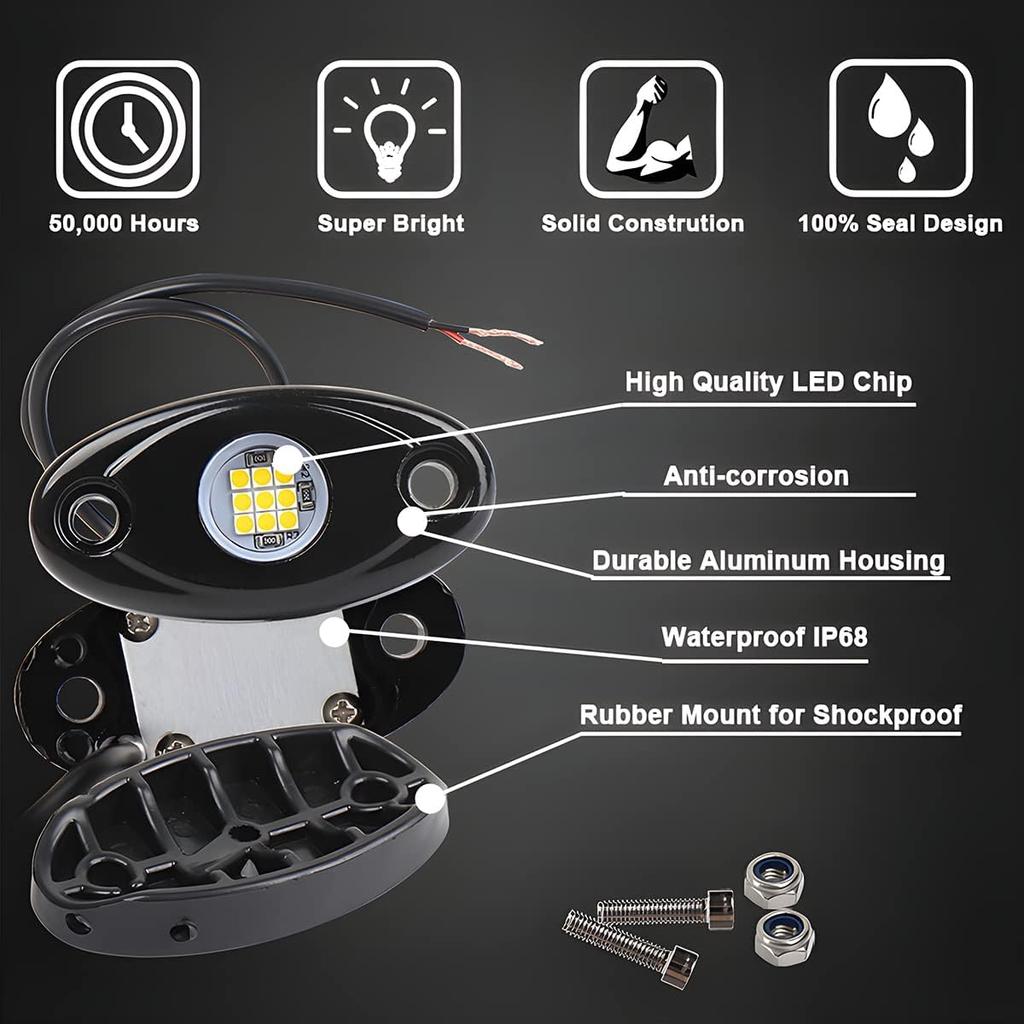 【Простая установка】: На наскальной лампе есть два провода, один положительный и другой отрицательный, которые можно использовать, если их подключить к автомобильному аккумулятору.. Вы можете управлять переключателем в машине. Они просты в установке и имеют отличное освещение. Когда вы едете по дороге, огни создают отличный вид, а контроллер работает хорошо.