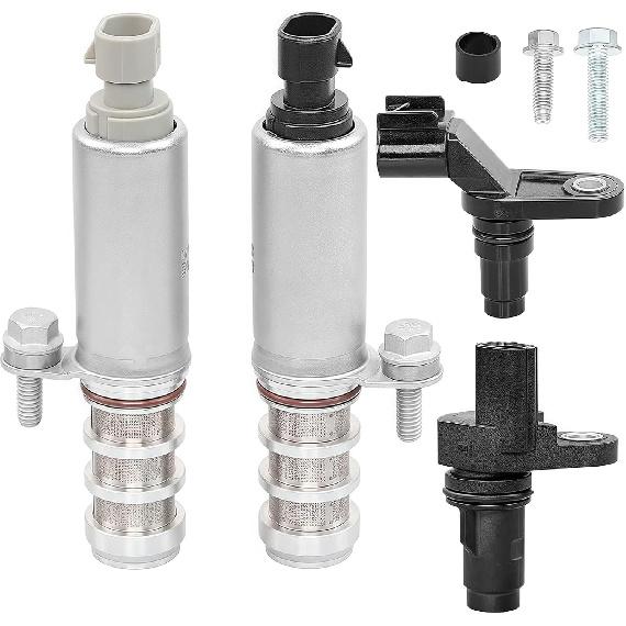 Intake And Exhaust Camshaft Position Actuator VVT Solenoid Valve Kit With Camshaft Crankshaft Engine Sensor- Compatible With