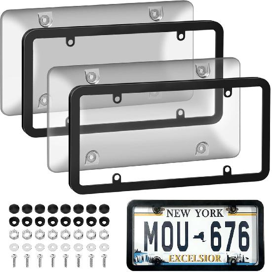 License Plate Frame Cover, Clear License Plate Protector 2 Pack, ABS Car Rear Front Plate Frames With Screws Caps, Rustproof, Unbreakable, Easy Tall