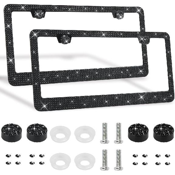 2 Pack Bling License Plate Frames Premium Sparkly License Plate Frame For Women Durable Black Bling Car Accessories — купить товар онлайн с бесплатной доставкой по всему миру!