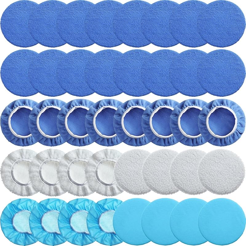Mudder 40 Pieces Buffer Pads Cover Car Polisher Bonnet Orbital Buffer Bonnets Microfiber Waxers Bonnet Set Including 24 Microfiber 8 Plush 8 Non