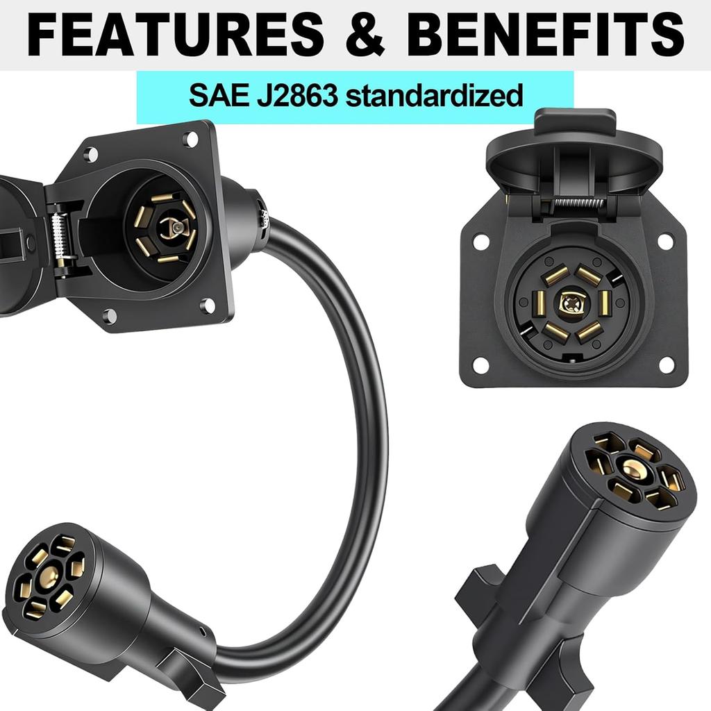 ✔️Эргономичный дизайн: Прочный разъем с ручками-крючками, зачищенный и цветокодированный кабель - все это делает 7-жильный кабель для прицепа легким для подключения к проводке вашего прицепа и освещению прицепа.. Разный размер обеспечивает достаточную дополнительную длину для легкой установки.