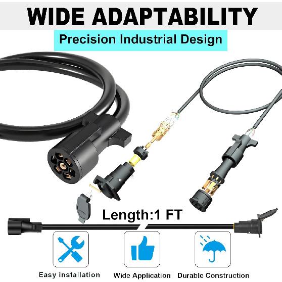 ✔️7-контактный удлинитель для прицепа:Стандартный 7-контактный удлинитель для прицепа CXTM, commonly used on RV camper trailers for towing RV travel trailers, provides a great replacement and interchangeable with virtually any 7 pole RV connector