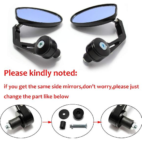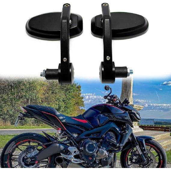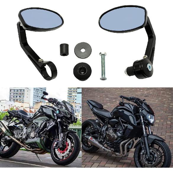 Black Universal Motorcycle Rearview Mirrors 7/8" Bar End For Cafe Racer Bobber Cruiser (Black-Oval)