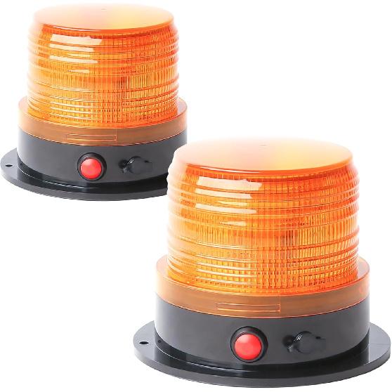 BooYu 2-Pcs Battery Operated Amber Warning Beacon Light W/Magnetic Base, Portable Rechargeable Mini Roadside Roof Top Plow LED Strobe Emergency Flash