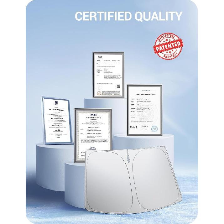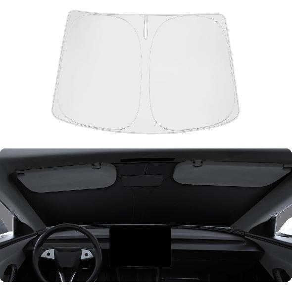 BASENOR 2017-2026 Tesla Model Y Model 3 Windshield Sunshade, Folding Front Window Sun Shade Full Cover, Heat UV Protection Visor Accessories