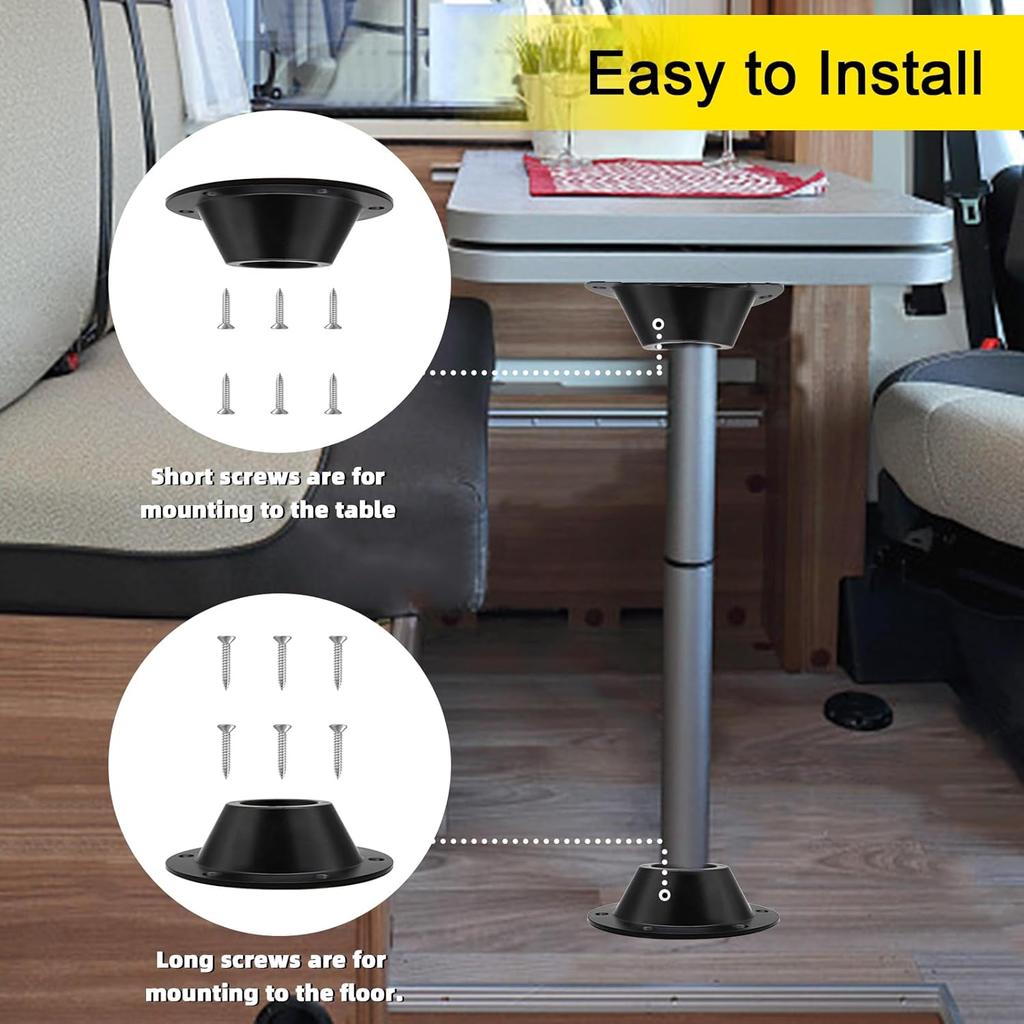 2 Pcs Aluminum RV Table Base Mount RV Dinette Table And Floor Mount Base 6 Mounting Holes Camper Table Leg Base With Mounting Screws For RV Boat