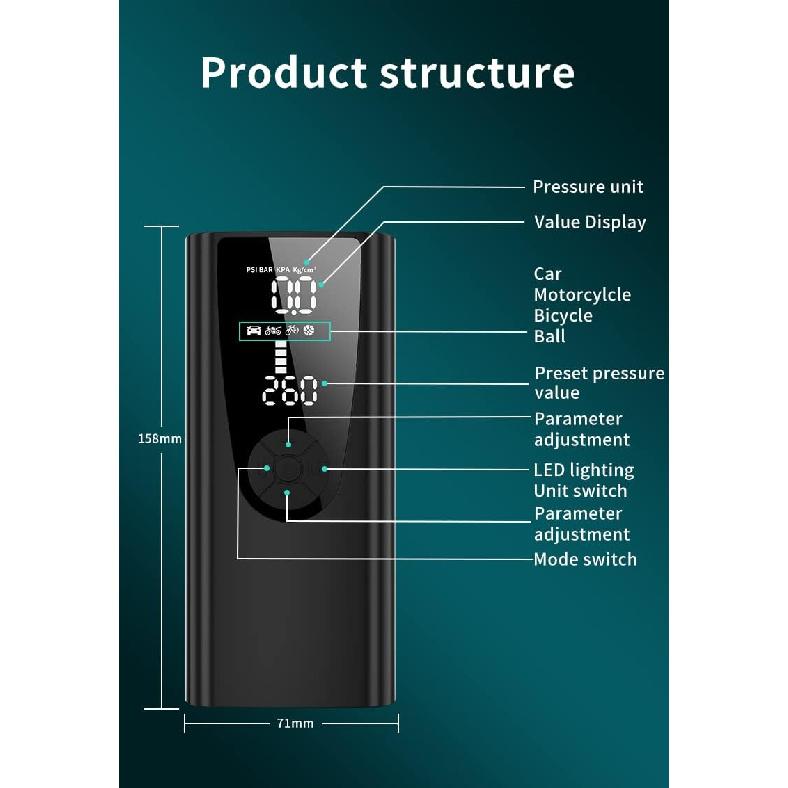 Портативный воздушный компрессор/насос для накачивания автомобильных шин с цифровым манометром - Воздушный компрессор (120 фунтов на кв. дюйм) - Мотоцикл, Насос для электровелосипеда