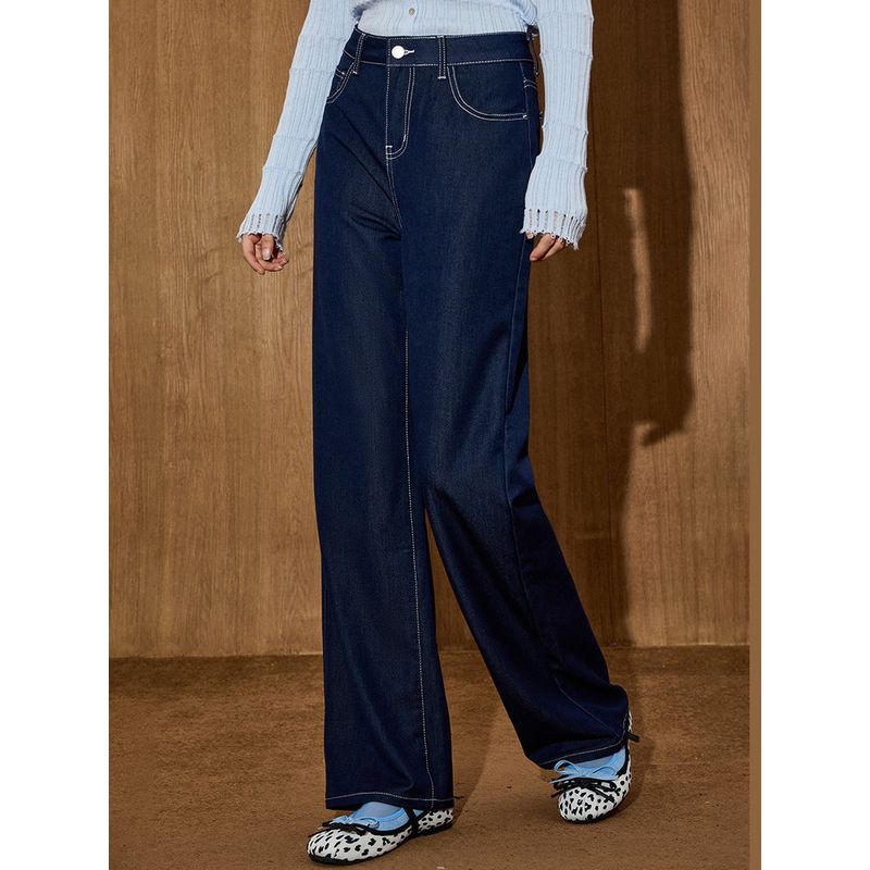 Coolhut2025 Autumn and Winter New Women's Fashion Casual Dark Blue Slimming and Flesh-Covering Women's Straight Wide-Leg Pants