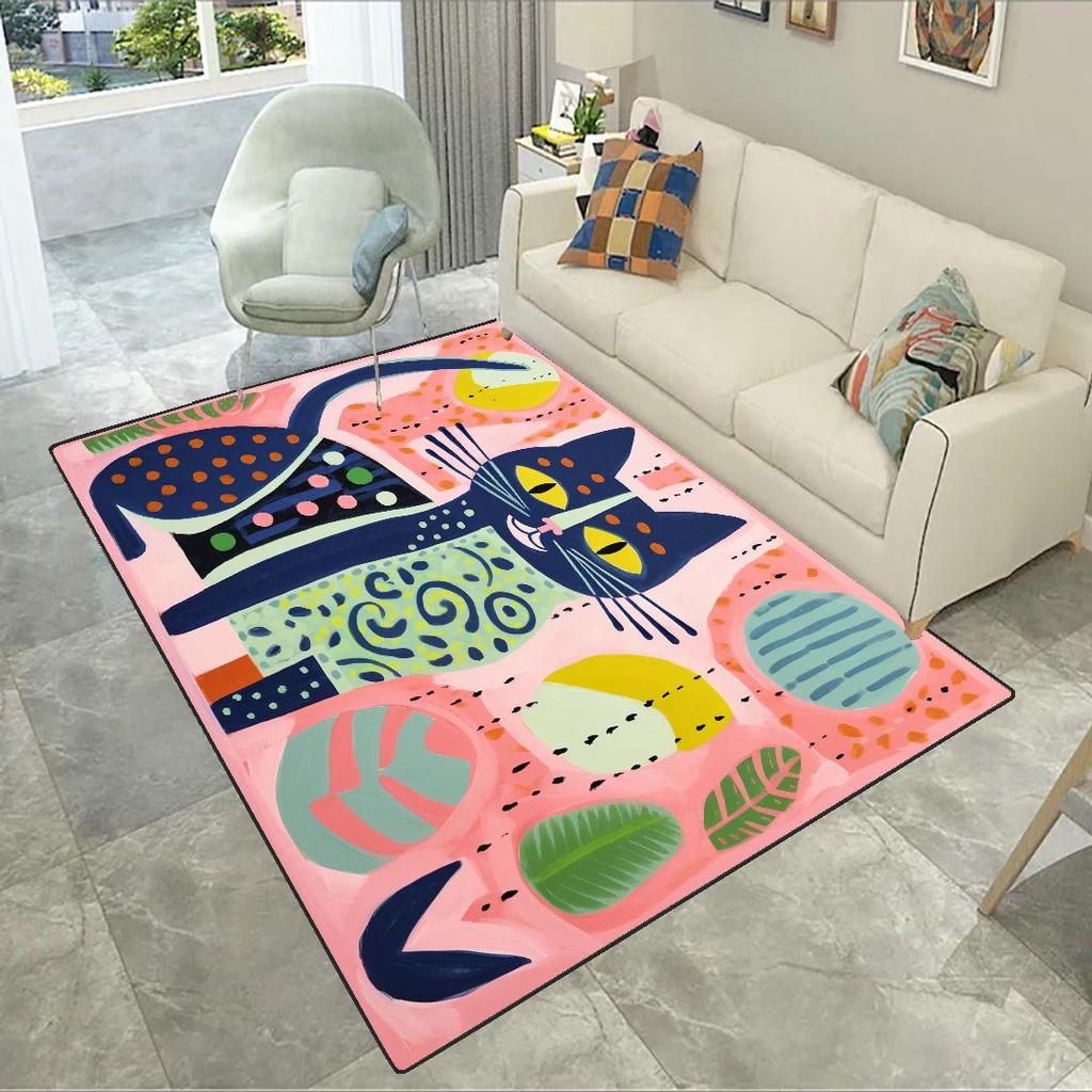 Ковер Искусство Кот Подходит для домашних животных для гостиной Домашнее украшение Нескользящий Прикроватный милый коврик Спальня Большая площадь Гардеробная Ковер Тапис