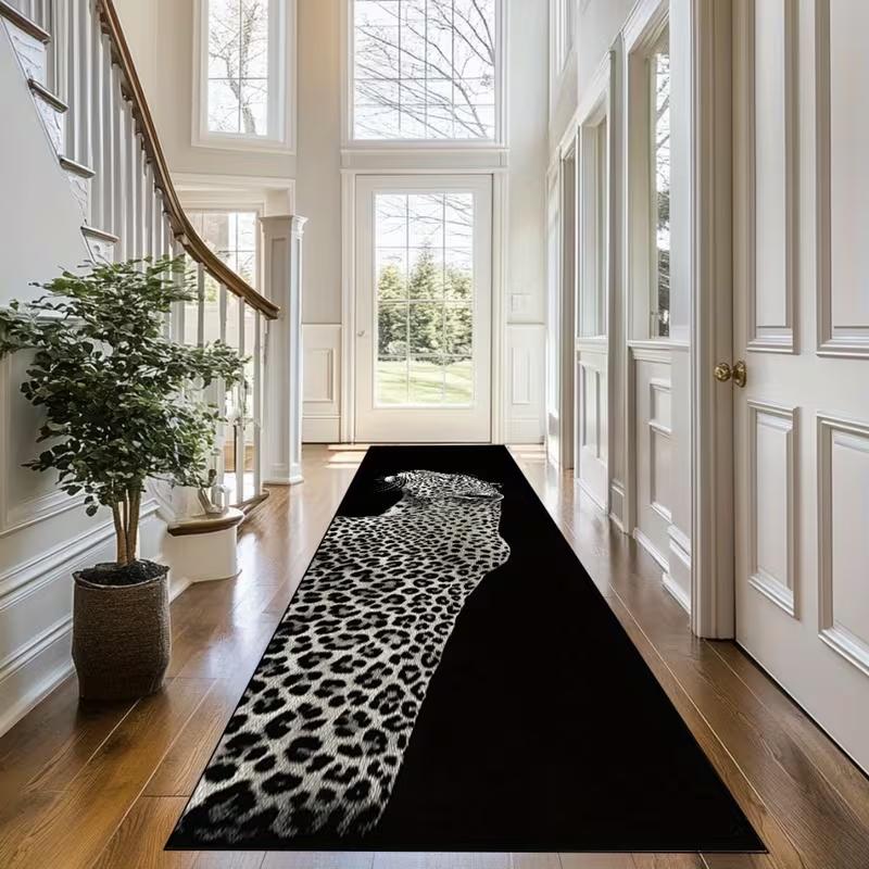 Темный геометрический ковер-дорожка, монохромный коврик с узором для прихожей и коридора, текстурированный напольный коврик для современных индустриальных пространств