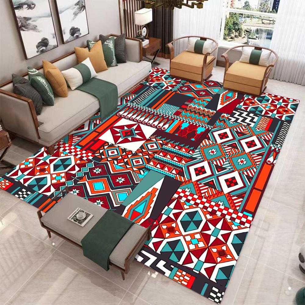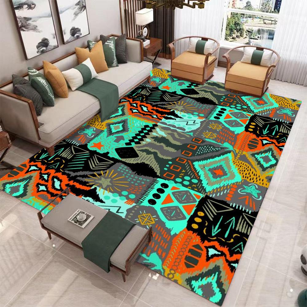 Богемный этнический ковер, красочный ковер с племенным узором, синий, оранжевый, зеленый, нескользящий, мягкий, украшение для дома, гостиная, современный напольный коврик
