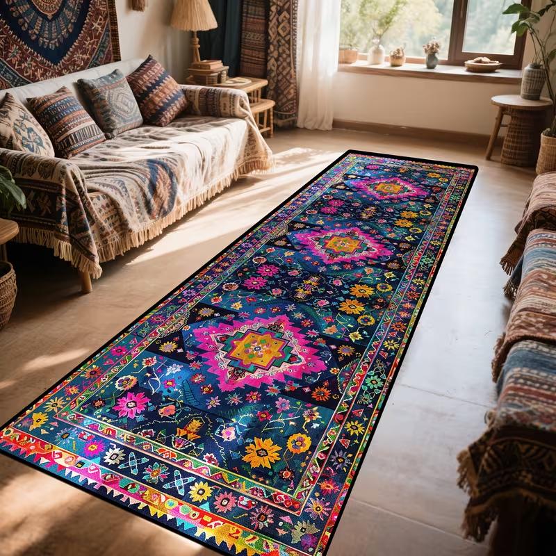Сложный геометрический фольклорный ковер, симметричный медальон на индиго с цветочным бордюром, коврик для богемной классической прихожей — купить товар онлайн с бесплатной доставкой по всему миру!