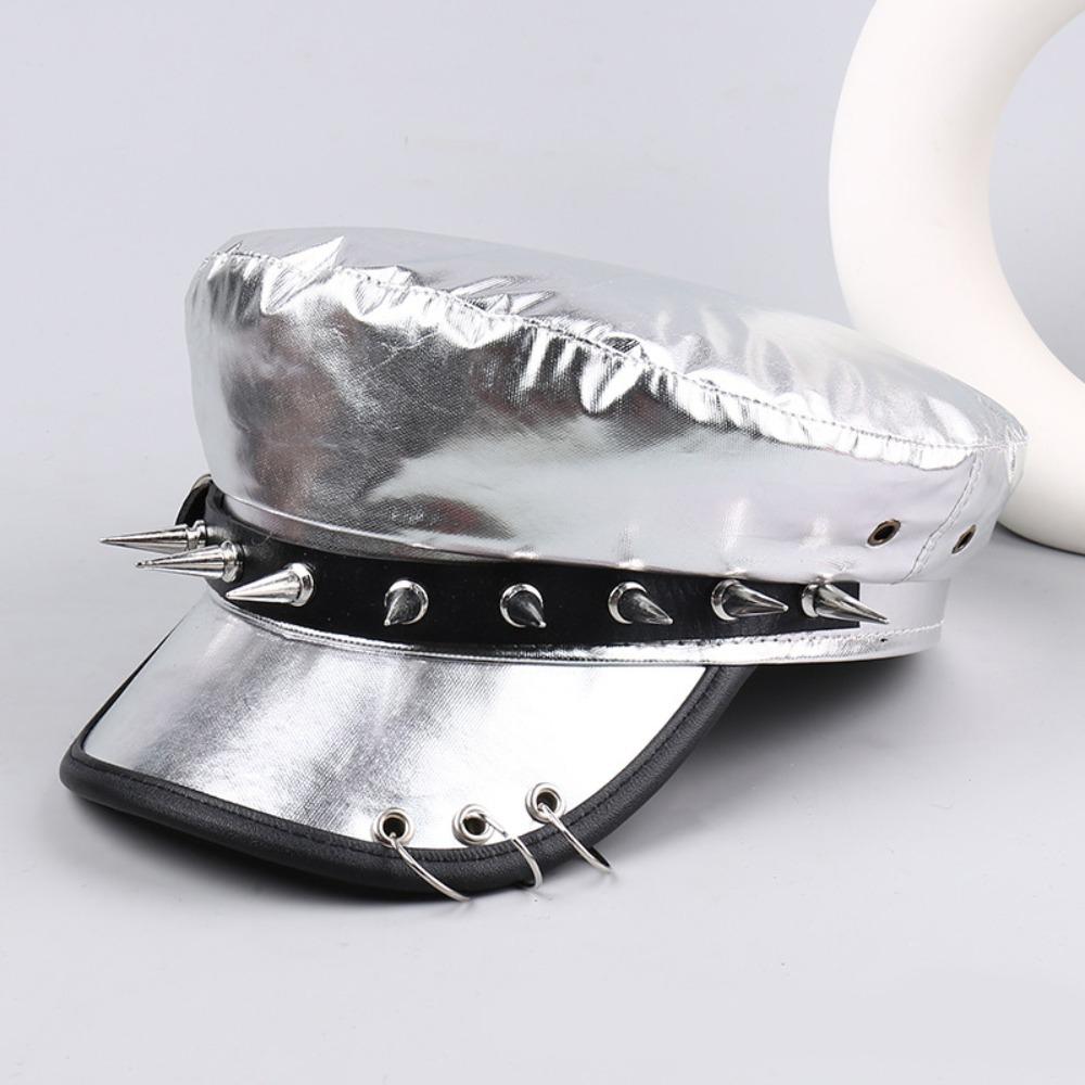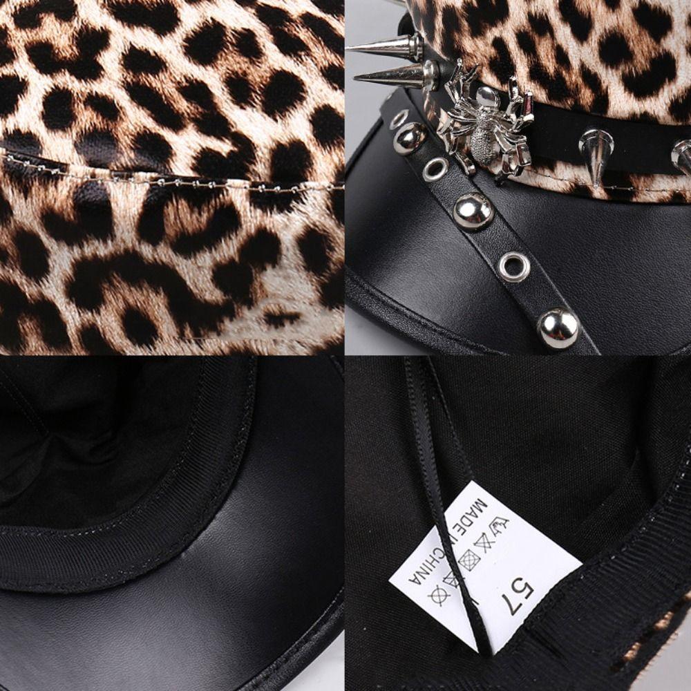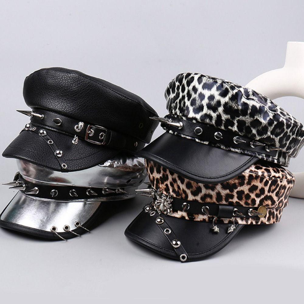Шляпа Harajuku с заклепками и леопардовым принтом, хип-хоп кепка с плоским верхом, винтажный берет Y2k для девочек