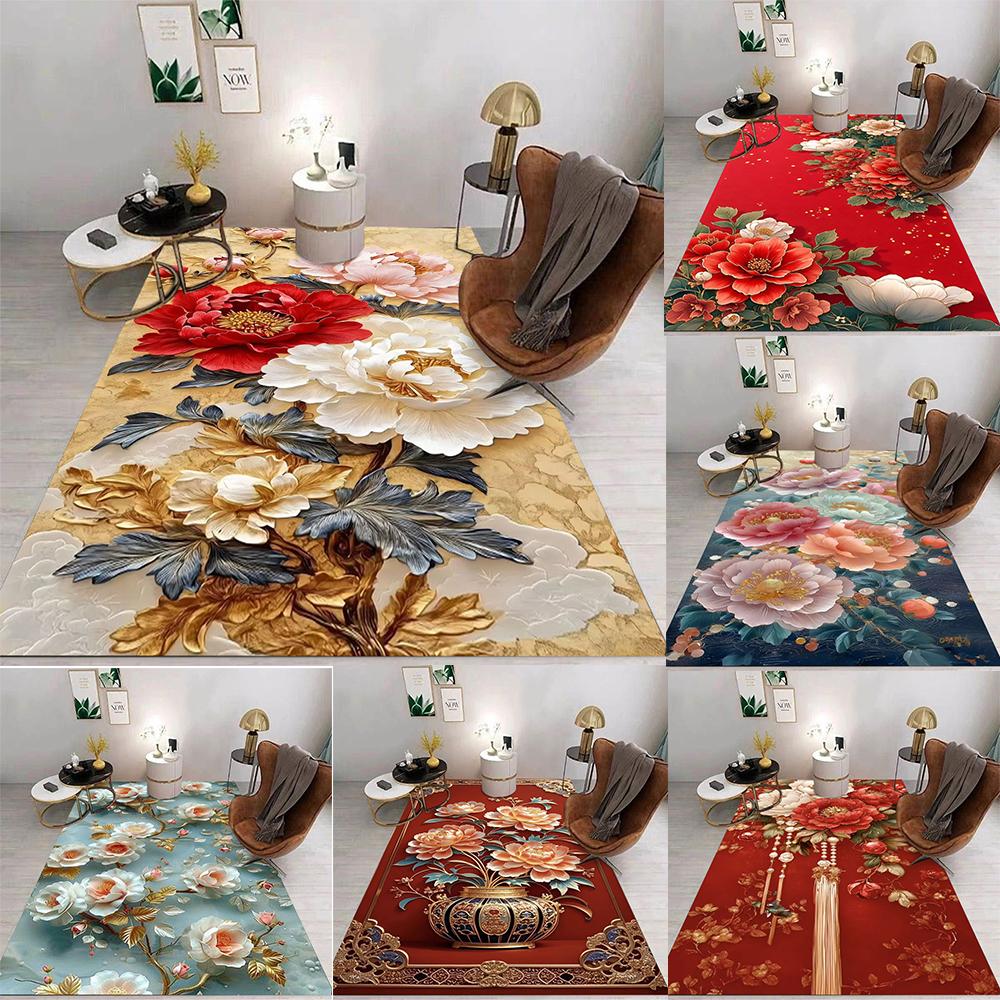 Ковер с цветочным рисунком, различные стили, с пионом, розой, золотыми листьями и кистями, нескользящий коврик для декора гостиной — купить товар онлайн с бесплатной доставкой по всему миру!