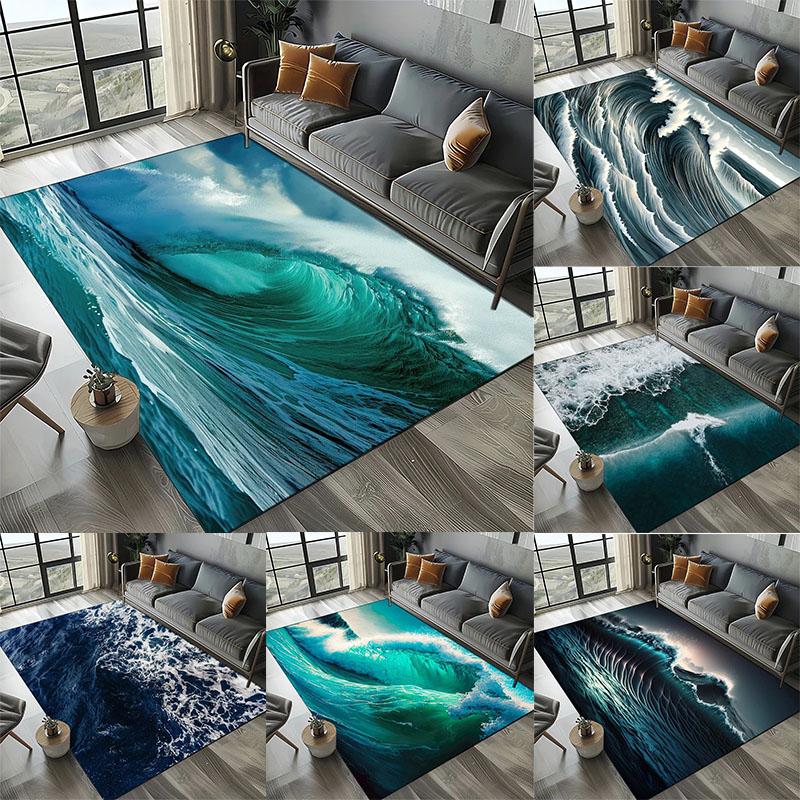 Сине-зеленый ковер с морской волной, пейзажный ковер-циновка для гостиной, спальни, дома, дивана, домашнее украшение, нескользящий коврик для пола