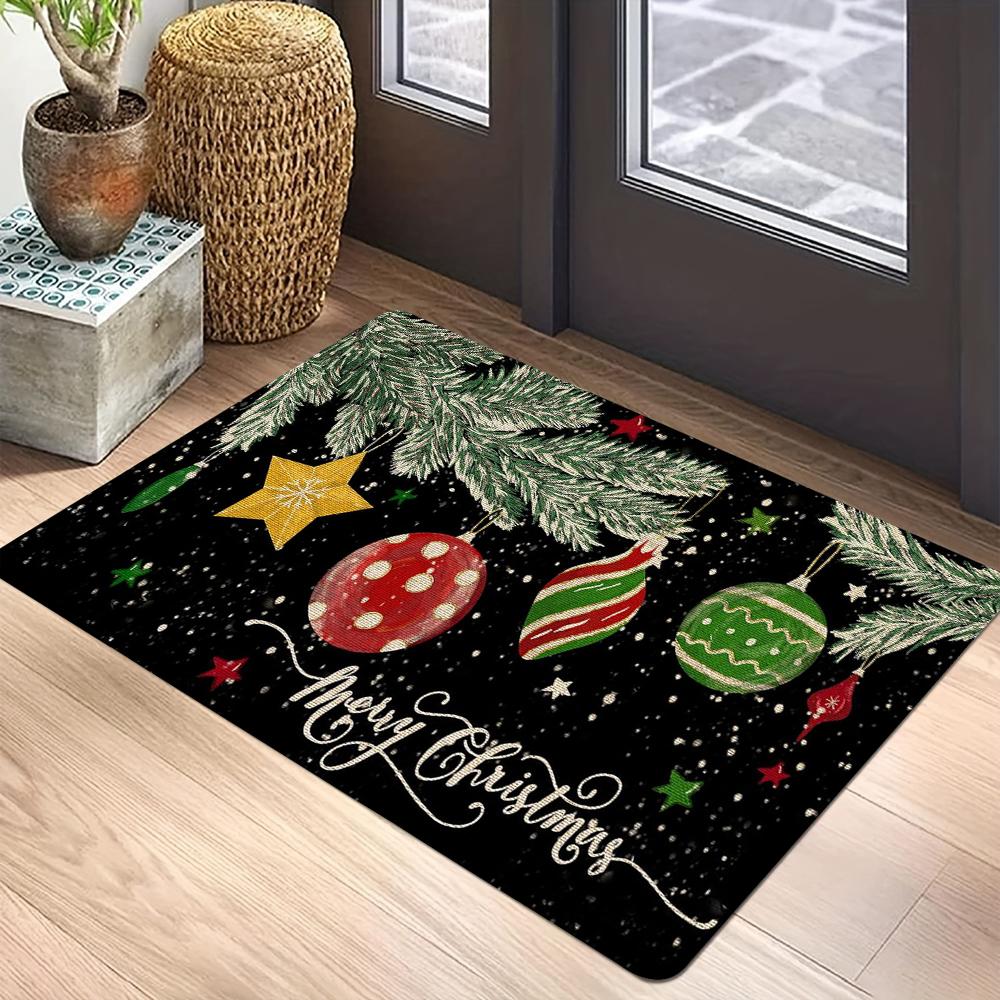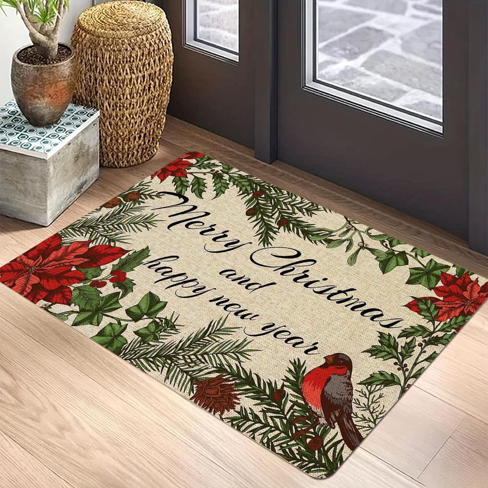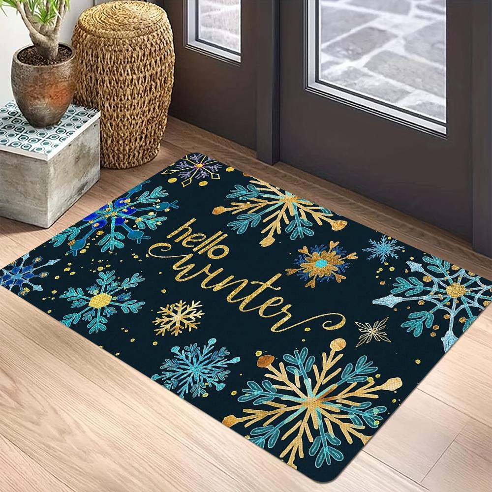 Holiday Themed Rectangle Rug Christmas Greetings Winter Snowflakes Ornament Patterns Perfect for Home Entrance Decor