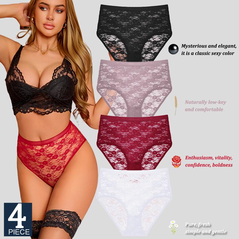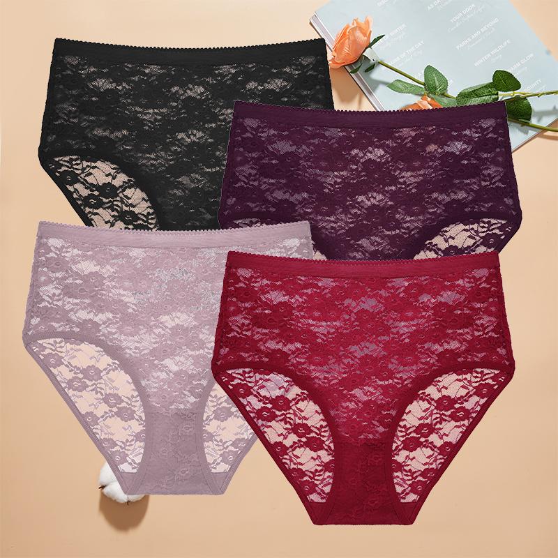4 шт. женские кружевные трусики с высокой талией, сексуальное нижнее белье, прозрачные женские трусы, облегающие, больших размеров, брифы S-XXL