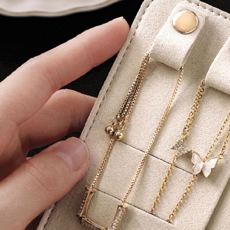 Featuring a unique rolls up design and secure inner pockets, this jewelry storage solution keeps your accessories organized and protected while saving space in luggage or drawers.