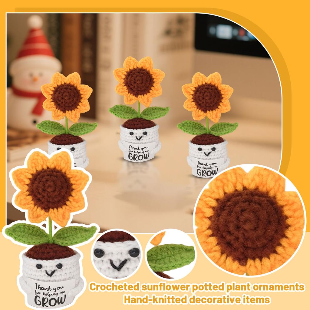 Ручная работа, вязаное готовое изделие, вязаный крючком подсолнух в горшке, декоративное украшение