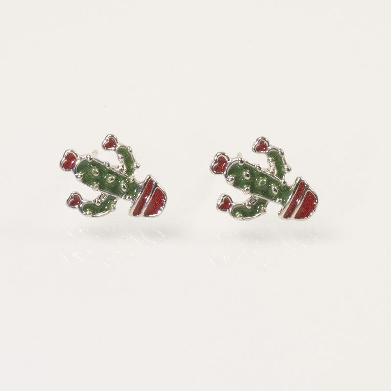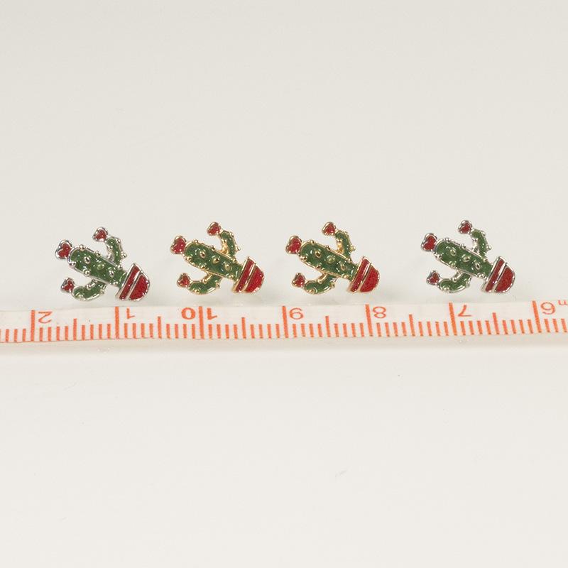 S925 Silver Needle Earrings Simple Female Small Premium Sense Painted Oil Cactus Earrings Internet celebrity Gold East Gate Earrings