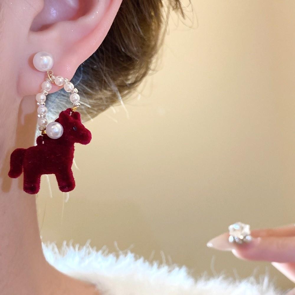 Cartoon Horse Horse Mascot Drop Earrings Fashion Jewelry Red Pony Earrings Party